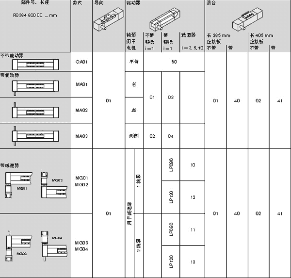 帶滾珠導軌系統和滾珠絲杠的直線運動模塊(MKK):這些模塊使用極為緊湊的鋁型材制造,集成力士樂滾珠導軌系統。使用滾珠絲杠提供驅動動力。優點是高負載能力、定位精度和重復定位精度。帶滾珠導軌系統和齒形帶驅動裝置的直線運動模塊(MKR):這些模塊使用極為緊湊的鋁型材制造,集成力士樂滾珠導軌系統。齒形帶驅動裝置提供驅動動力,可實現5m/s的運行速度。集成的博世力士樂零間隙導軌系統的高負載能力和優化的運行特性可以實現負載的快速移動。