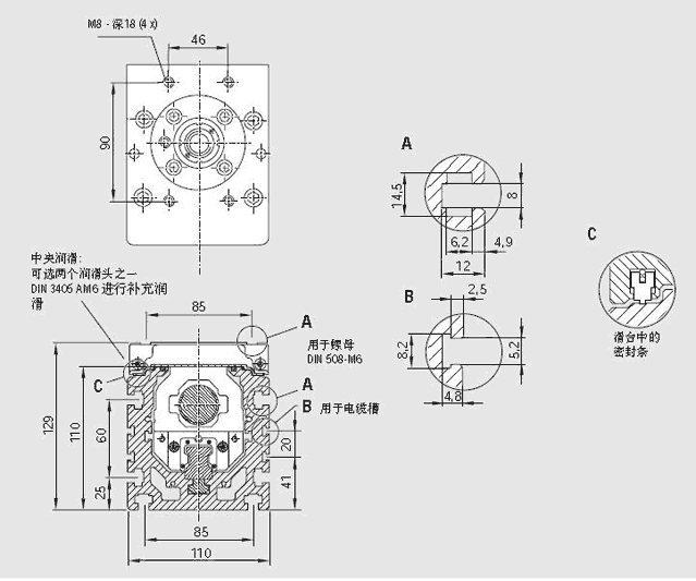 部件說明:直線運動模塊,帶有防護(hù)帶,配有兩個滑塊